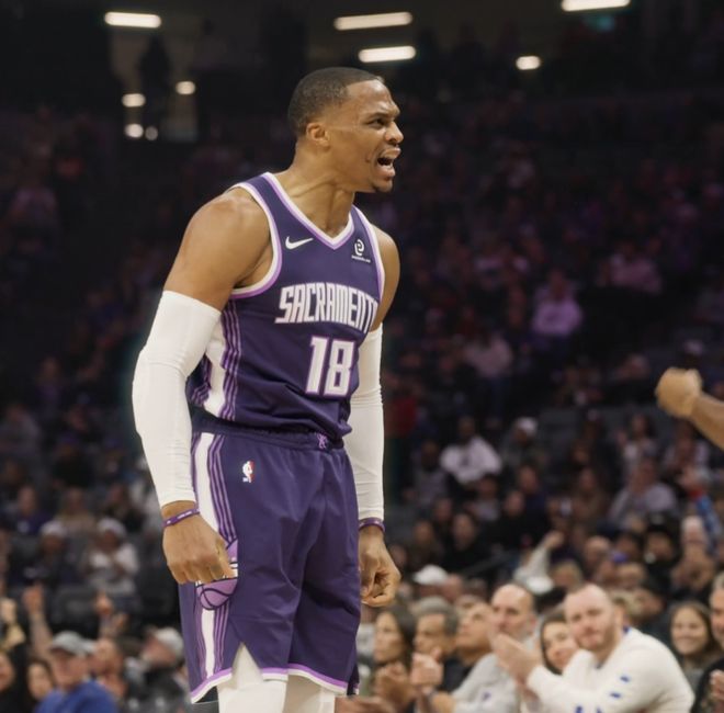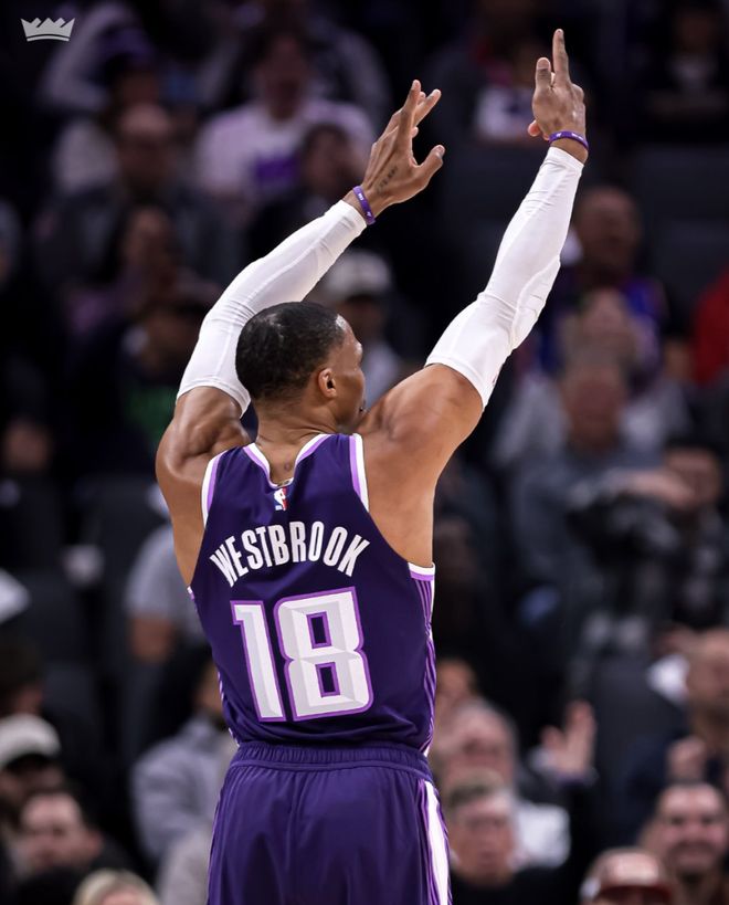这场比赛乌度卡的策略是放威少中远投,威少开场先是命中一个中投,第二个三分也中,他帮助国王打出14-4的小高潮,但随后威少的5次出手都偏出,首节8中3+三分4中2拿到8分3篮板1助攻。