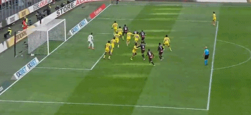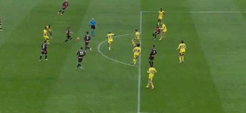 上半场补时阶段,莫德里奇主罚右侧角球,拉比奥前点头球摆渡,无人盯防的普利西奇推射,球击中横梁下沿之后反弹入网,1比0!
