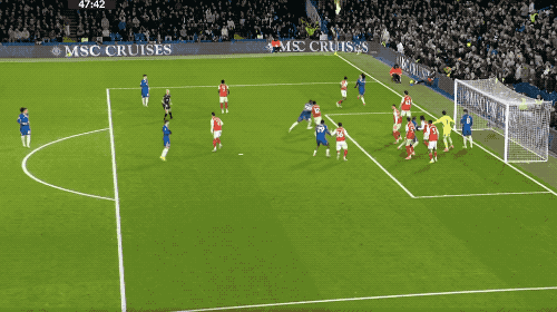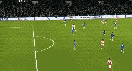 第59分钟,萨卡下底后虚晃一枪传中,梅里诺再次完美完成中锋的角色,头槌破门。
