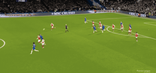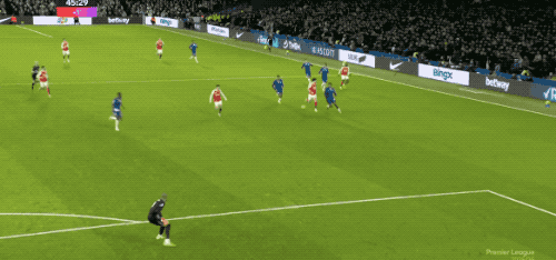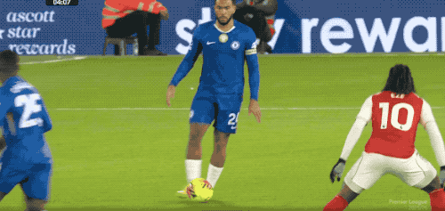 第12分钟,赖斯的界外球被解围,埃泽送出妙传,萨卡准备打穿桑切斯的小门,被蓝军门将识破。