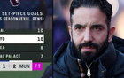 曼联本赛季英超已有10个定位球进球,与阿森纳并列第一